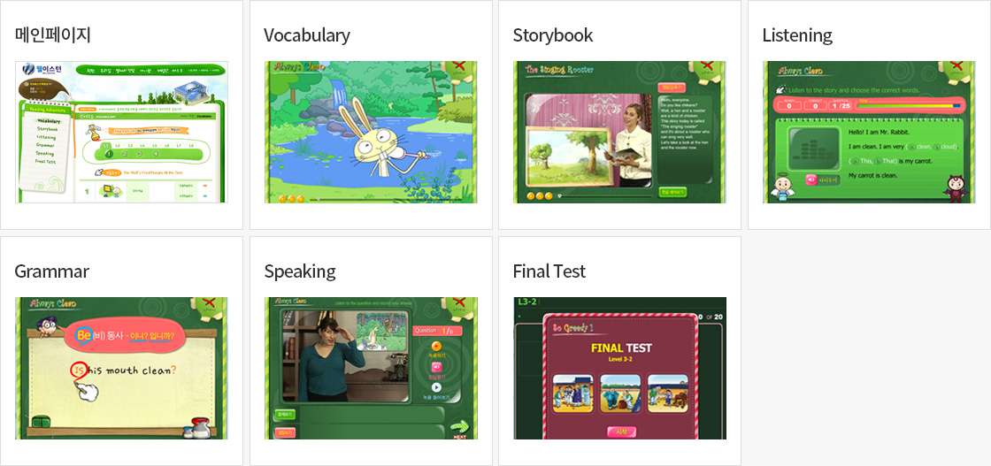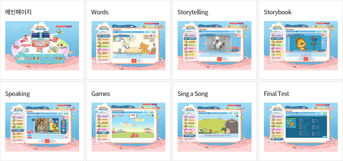 - Basic 레벨 : 스토리 본책(Textbook)과 보조도서(Self-Reading Book), 오디오 CD, 온라인학습